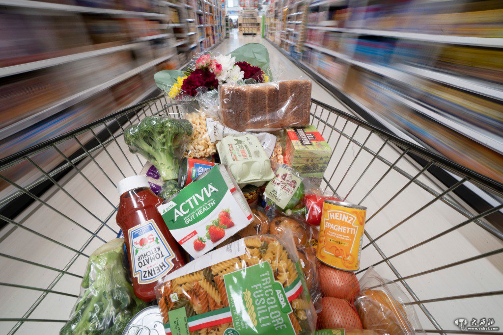这是4月13日在英国曼彻斯特一家超市内拍摄的购物车。新华社发(乔恩·休珀摄)