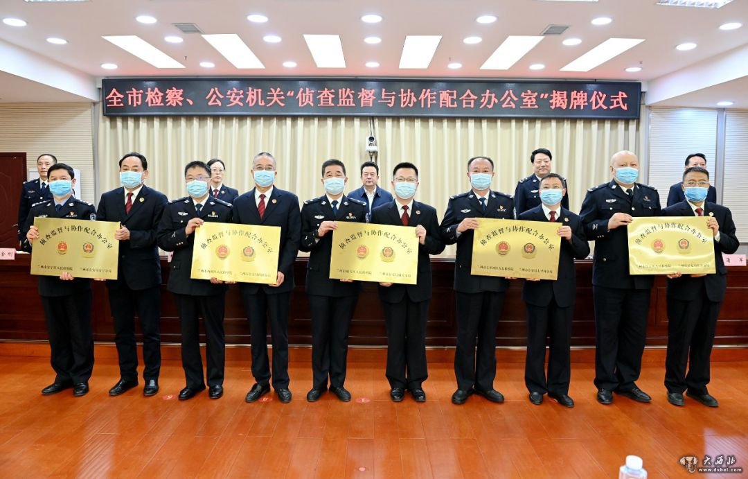 仪式上,参会领导共同为市检察院和市公安局“侦查监督与协作配合办公室”进行揭牌,并向各县、区检察院、公安局“侦查监督与协作配合办公室”授牌。
