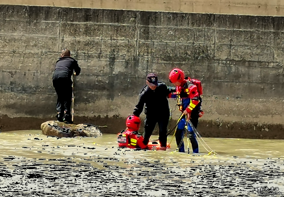 险情就是命令,时间就是生命!见此情形,派出所民警许登科不顾个人安危,立即将救援绳索拴在自己身上,在同事们的协助下,从被困老人附近的电站大坝索降到河中,用绳子将老人和自己紧紧绑在了一起。