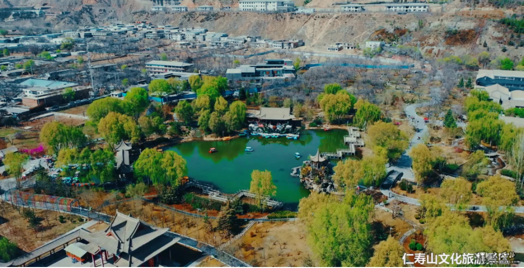 “金城四月天,乐游仁寿山。风催桃花开,绿荫绕山环。楼台亭阁秀,花俏令人怜。蜂蝶翩翩舞,情醉桃花源”。仁寿山生态旅游风景区是国家4A级景区。万年不老的仁寿山,山上亭台楼阁,掩映于绿树红花之间,主要建筑有自明弘治年间记载以来的凌云阁、天尊庙、祖师庙、三清殿、财神庙、朱家祠堂、寿仙台、仁寿厅等多处人文建筑,民俗宗教文化深厚,历史悠久。