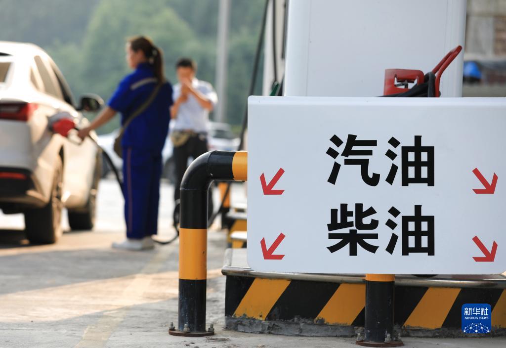 4月28日,贵州省黔东南苗族侗族自治州从江县一加油站的工作人员给车辆加油。
