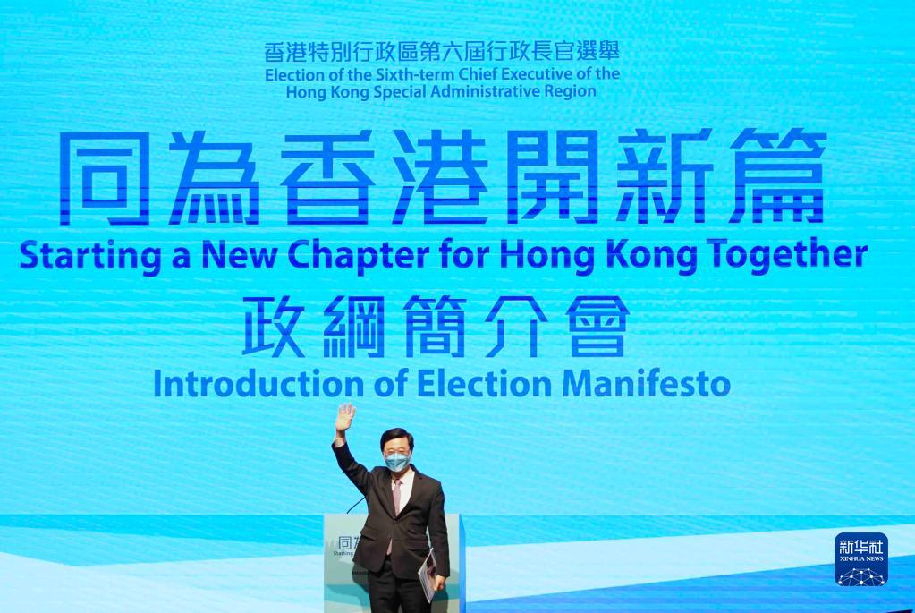 香港特区第六届行政长官选举候选人李家超举行政纲简介会(4月29日摄)。新华社记者 吕小炜 摄