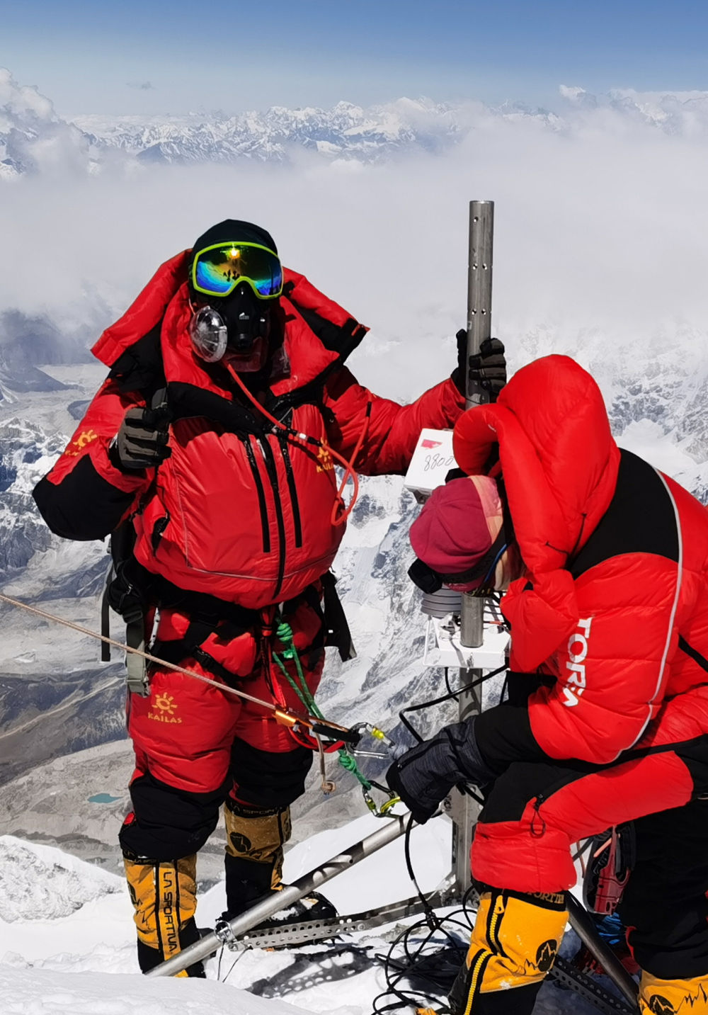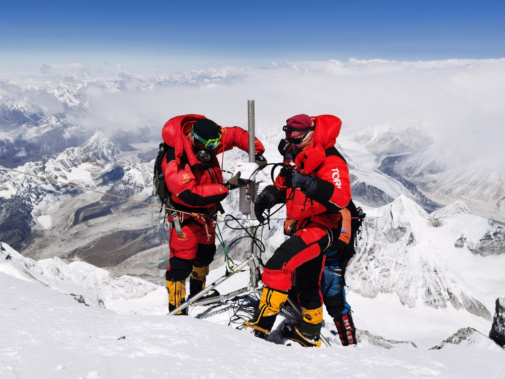 “巅峰使命”珠峰科考正在进行,科考队员在珠峰海拔8800米以上架设自动气象站,并在“地球之巅”利用高精度雷达测量峰顶冰雪厚度。