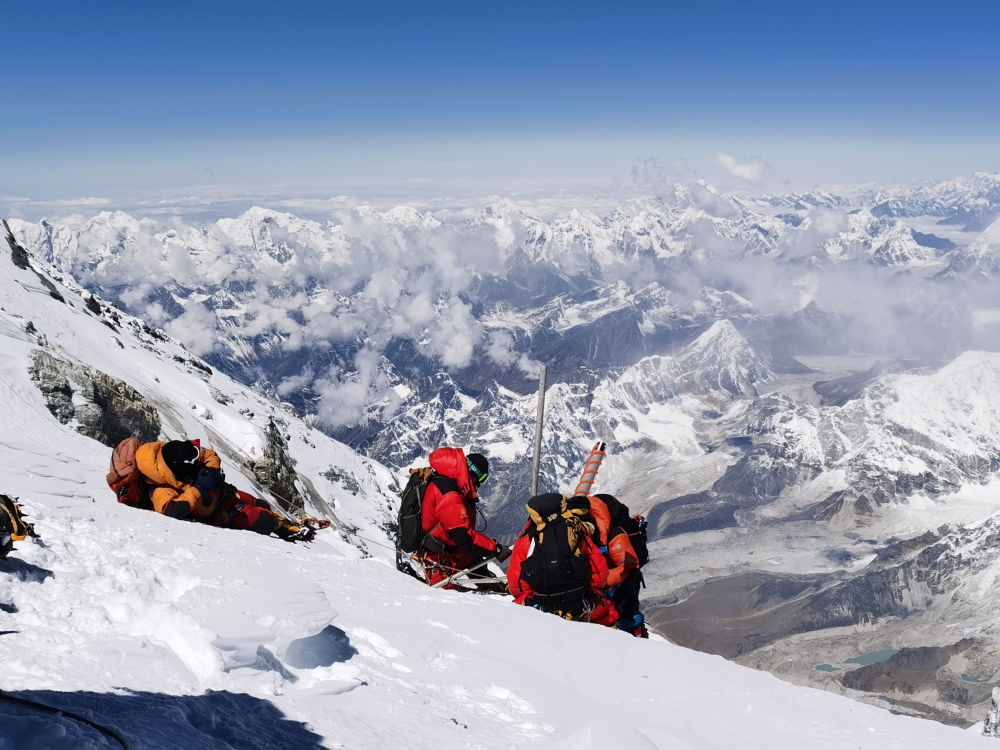 在峰顶完成雷达测量雪深、采集冰雪样品等科研工作后,珠峰科考登顶工作小组队员们于次日安全下撤到珠峰大本营,老队员、新组长德庆欧珠的任务顺利完成。