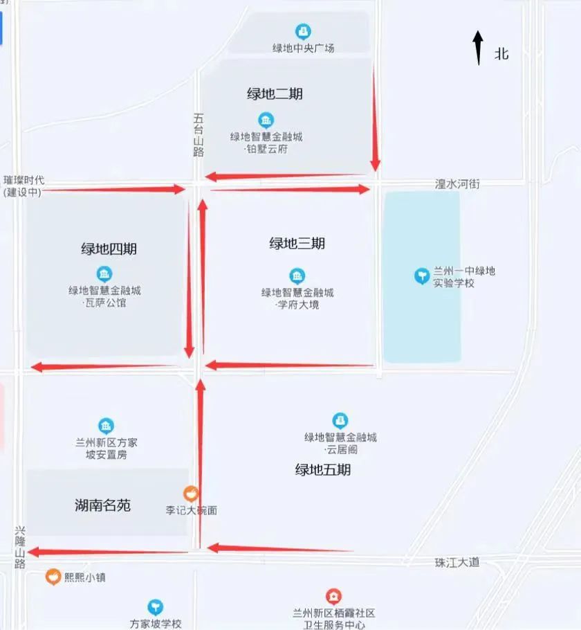 5.珠江大道(兴隆山路以东、泰山路以西)北侧(绿地五期南侧、湖南名苑南侧)