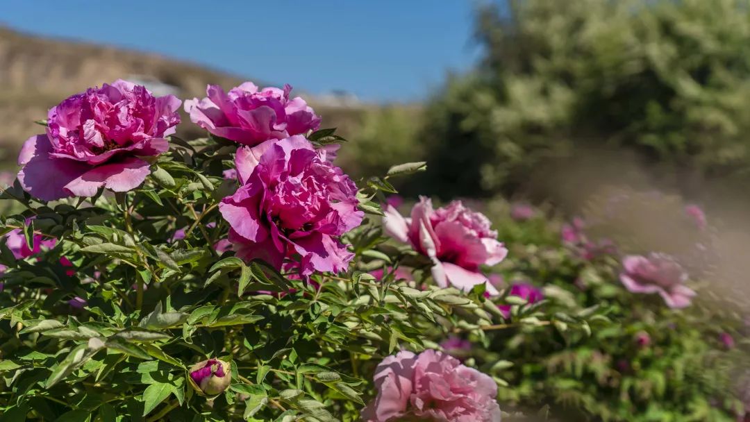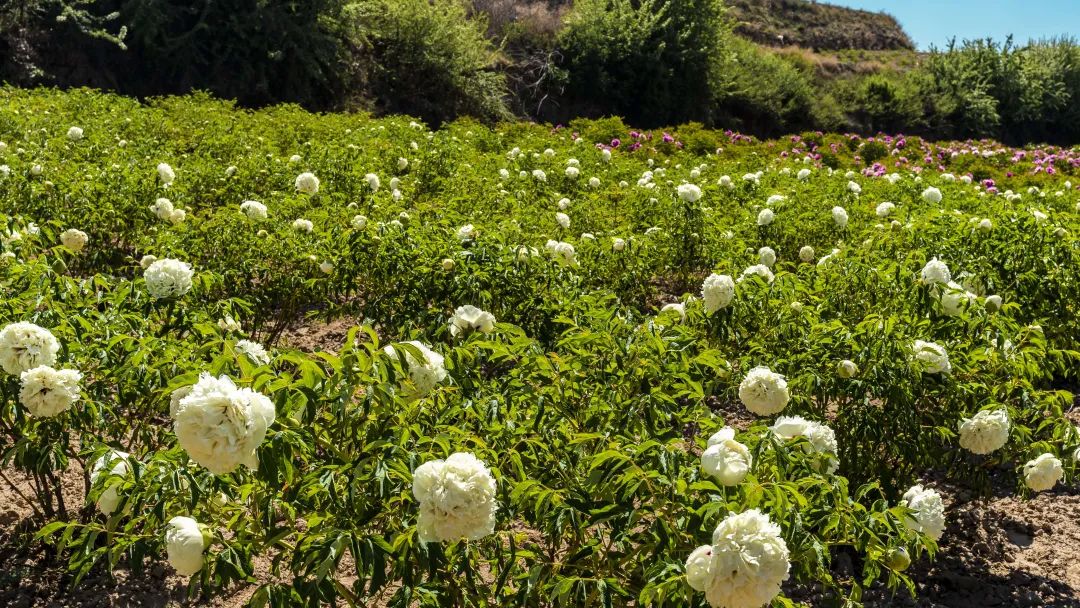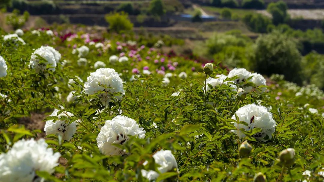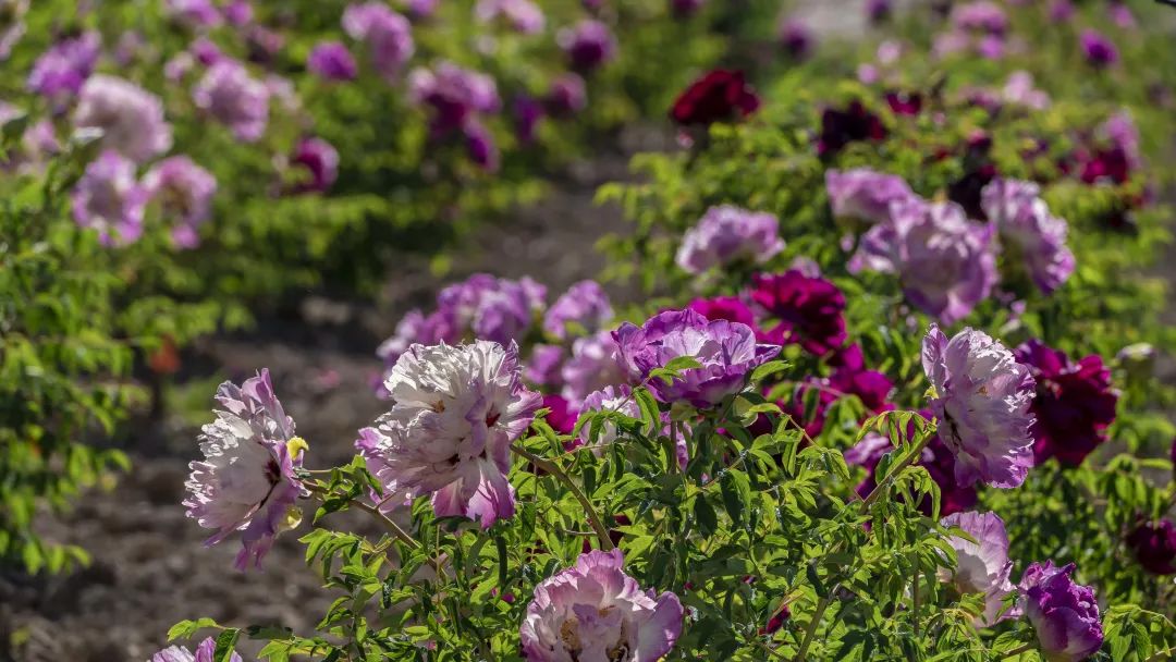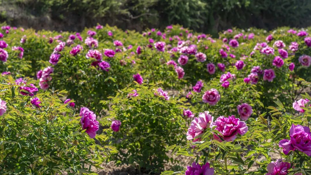 近日,榆中县高崖镇湖滩村牡丹种植基地500亩牡丹迎来了盛花期。该园现有红冠玉珠,红粉佳人,和平红绣球,和平二乔,陇右二乔,宝莲灯,流光溢彩,百丈冰,蓝玉三台等紫斑牡丹品种120多个,目前种植各类牡丹芍药共8万余株。