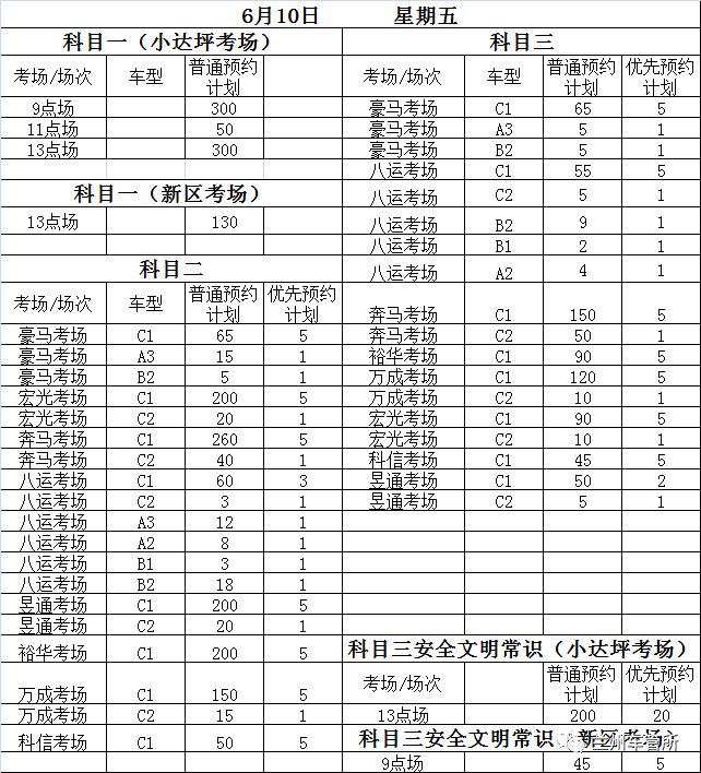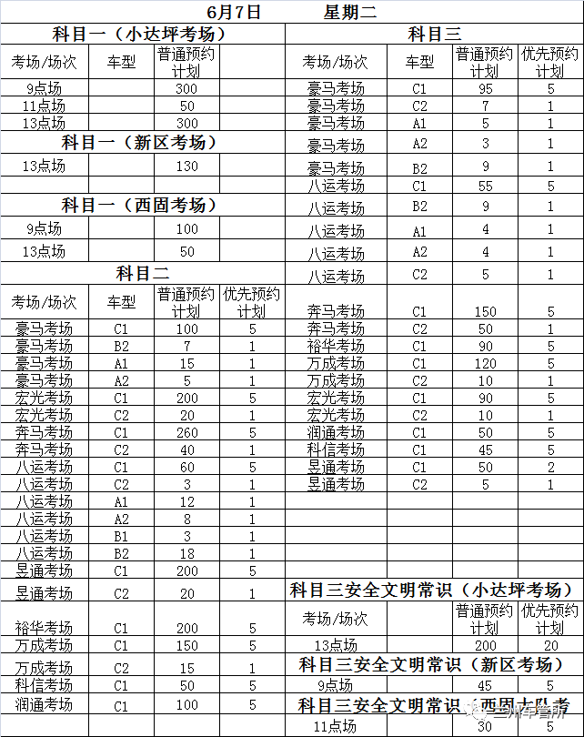 2022年6月6日至6月10日的机动车驾驶人考试计划已投放,请考生合理安排自己的时间进行考试。有考试需求的考生请登陆公安部交通安全综合服务管理平台