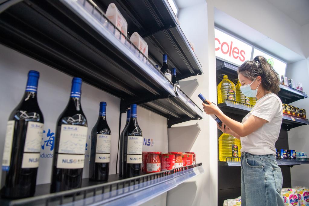 5月28日,消费者在位于重庆解放碑商圈的陆海新通道国际消费中心选购商品。新华社记者唐奕摄