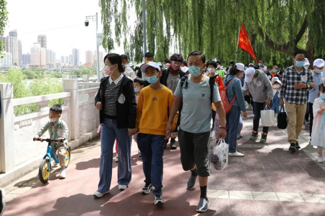 2022年5月29日上午9:30——12:00,从新世界百货到黄河母亲,沿着魅力黄河风情线,由湖南省鼎翰公益基金会、兰州德爱心智障碍者社会服务中心、兰州新世界百货联合举办,有支持单位30家共同举办生命健康•行走的爱——第4届鼎翰公益健步走活动,一边健身徒步做倡导。本次徒步活动有民革兰州市委会妇女青年工作委员会10组爱心家庭,芯儿国际幼儿园45组爱心家庭及老师、兰州新启点20组心智障碍者家庭及老师、兰州彩虹之家40组心智障碍者家庭及老师、兰州大学5个社团、西北师大2个社团共计400人参与。