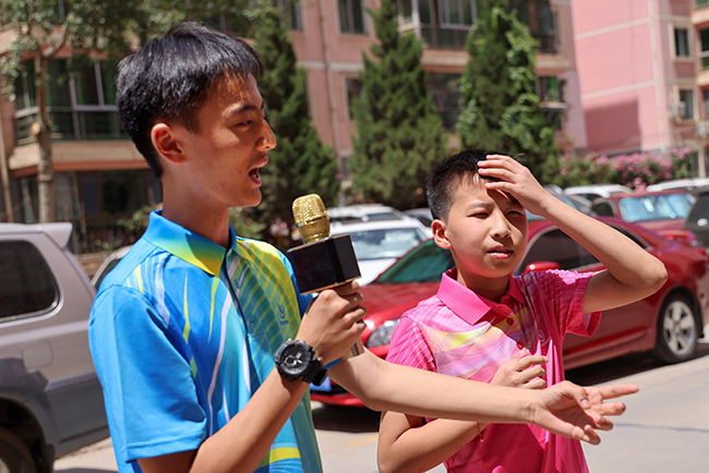 孤残困境少年儿童表演自编相声《别人家的孩子》。 贾笑云 摄