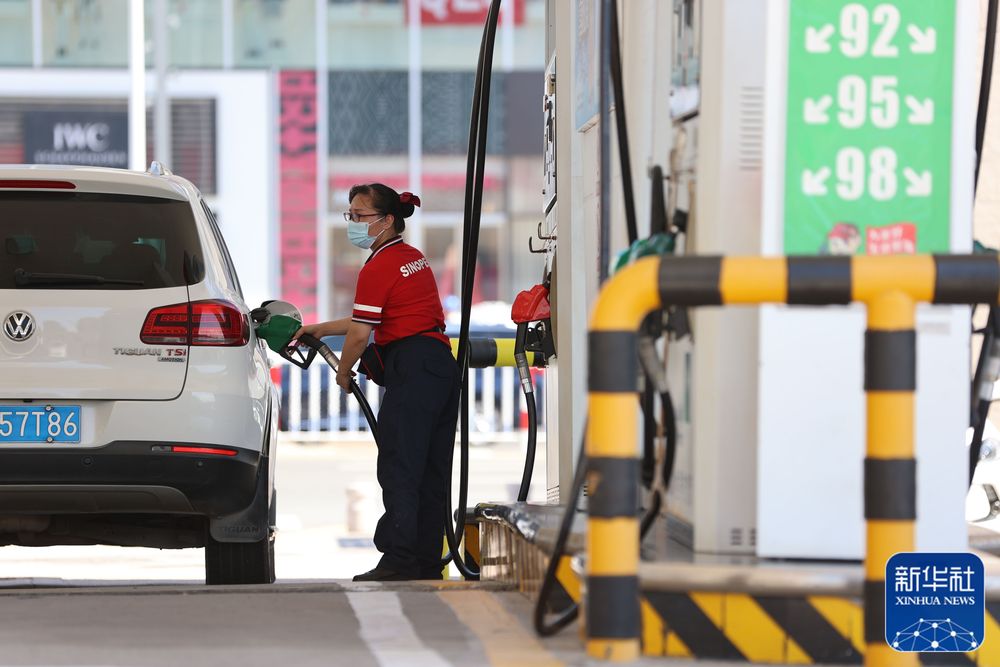 7月12日,河北邢台经济开发区信都路一加油站的工作人员给汽车加油。 新华社发(田晓丽摄)