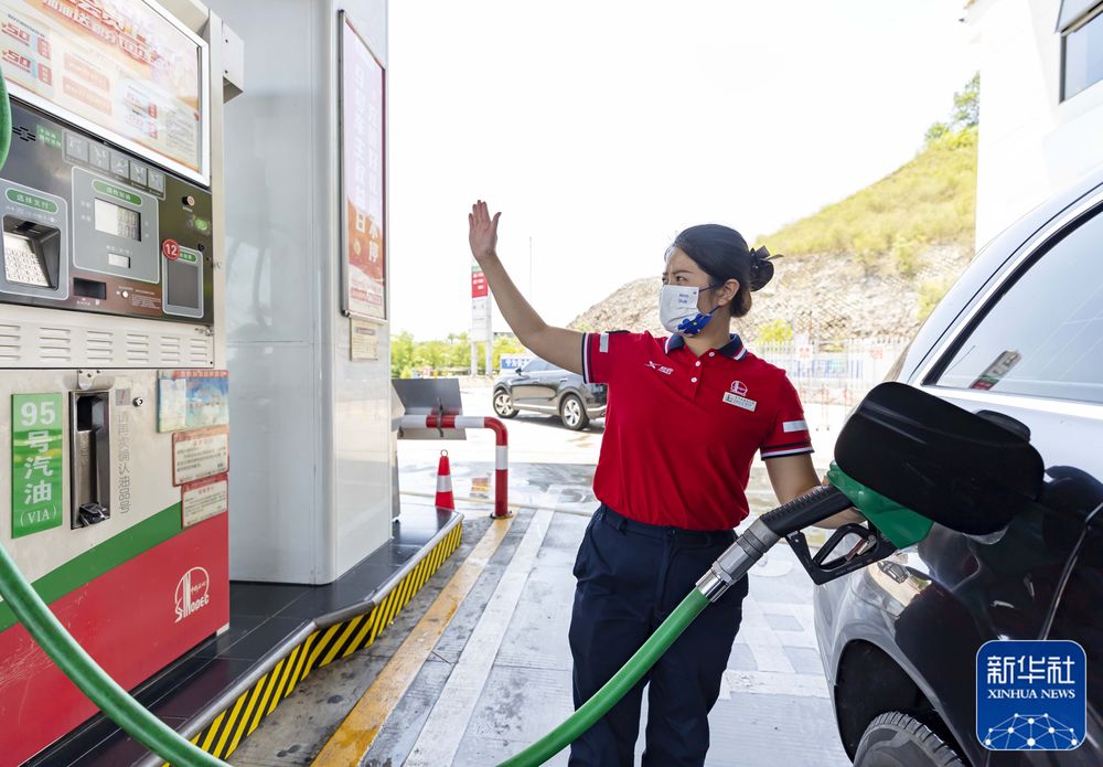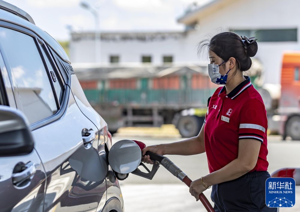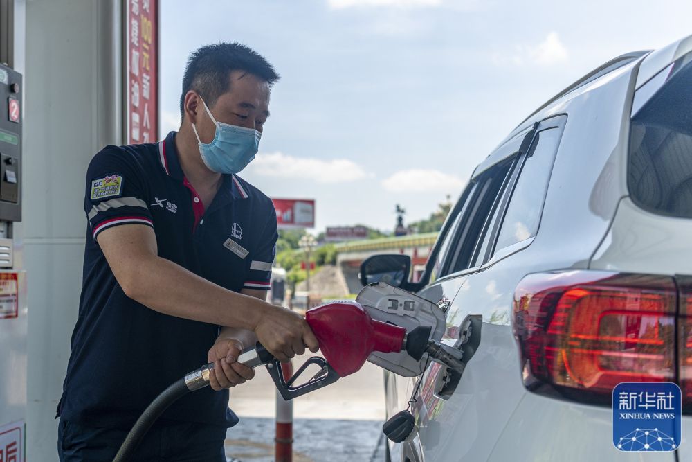 7月12日,福建省厦门市思明区一加油站的工作人员在给汽车加油。 新华社发(曾德猛摄)