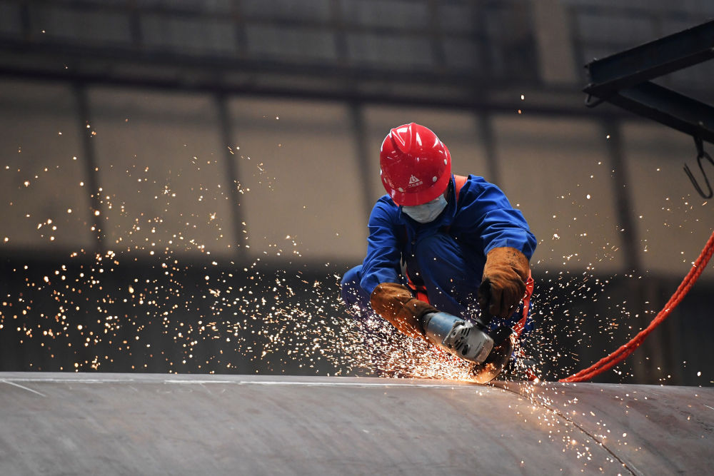 工人在兰州新区兰石集团高端装备产业园车间内作业(8月11日摄)。新华社记者陈斌摄