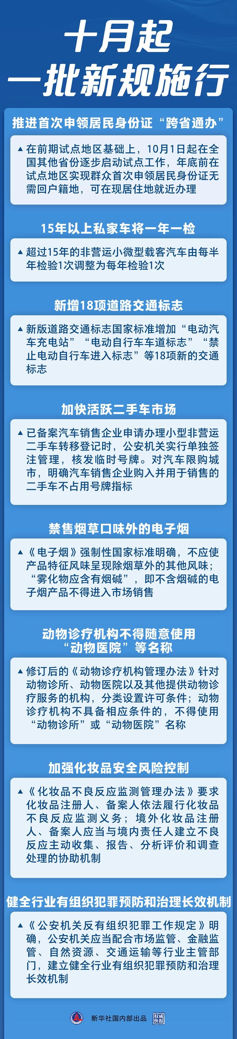 新华社北京9月30日电题:金秋十月,这些新规影响你我生活