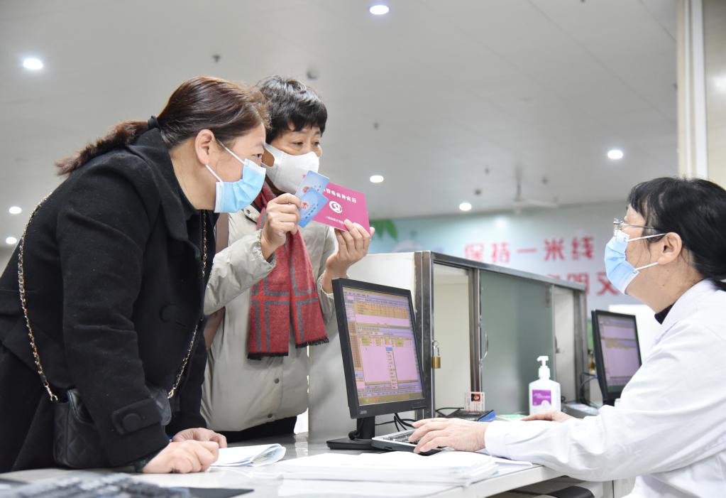 在福建省三明市沙县区总医院便民门诊窗口,群众在咨询特殊病种报销情况(2022年1月14日摄)。新华社发(许琰摄)