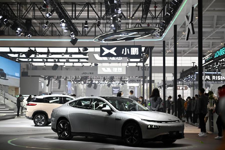 11月10日,观众在2022中国(天津)国际汽车展览会小鹏汽车展台参观。新华社记者赵子硕摄