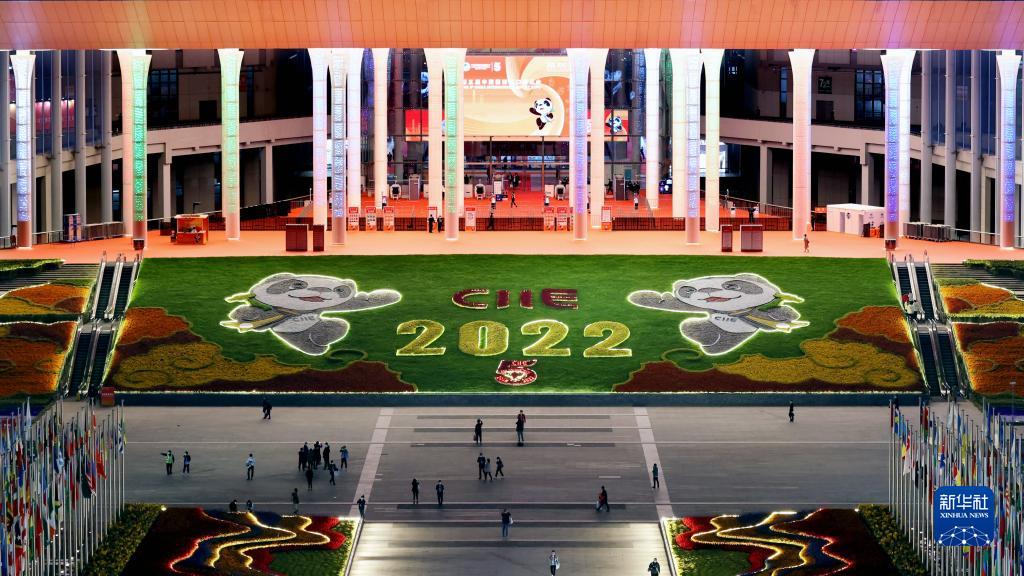 这是2022年11月5日拍摄的第五届中国国际进口博览会举办地国家会展中心(上海)夜景。新华社记者刘颖摄