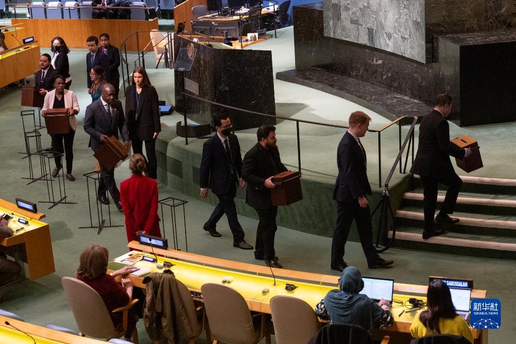 这是11月15日在纽约联合国总部拍摄的联合国上诉法庭和争议法庭法官选举现场。新华社发(联合国供图/洛伊斯·费利普摄)