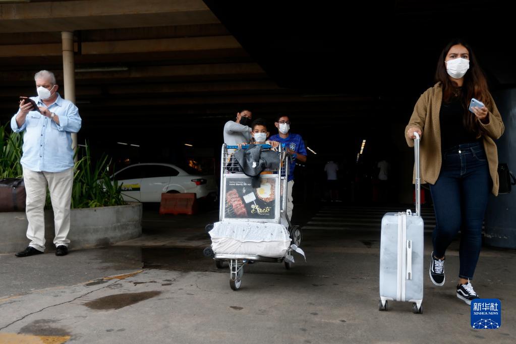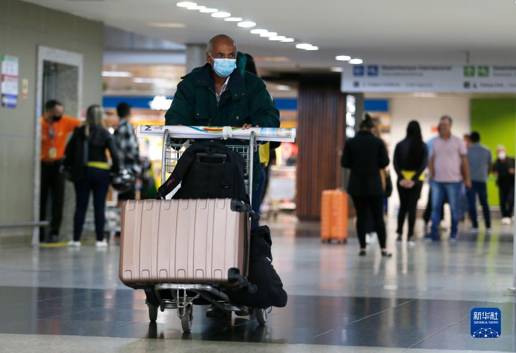 11月26日,旅客在巴西首都巴西利亚国际机场戴口罩出行。