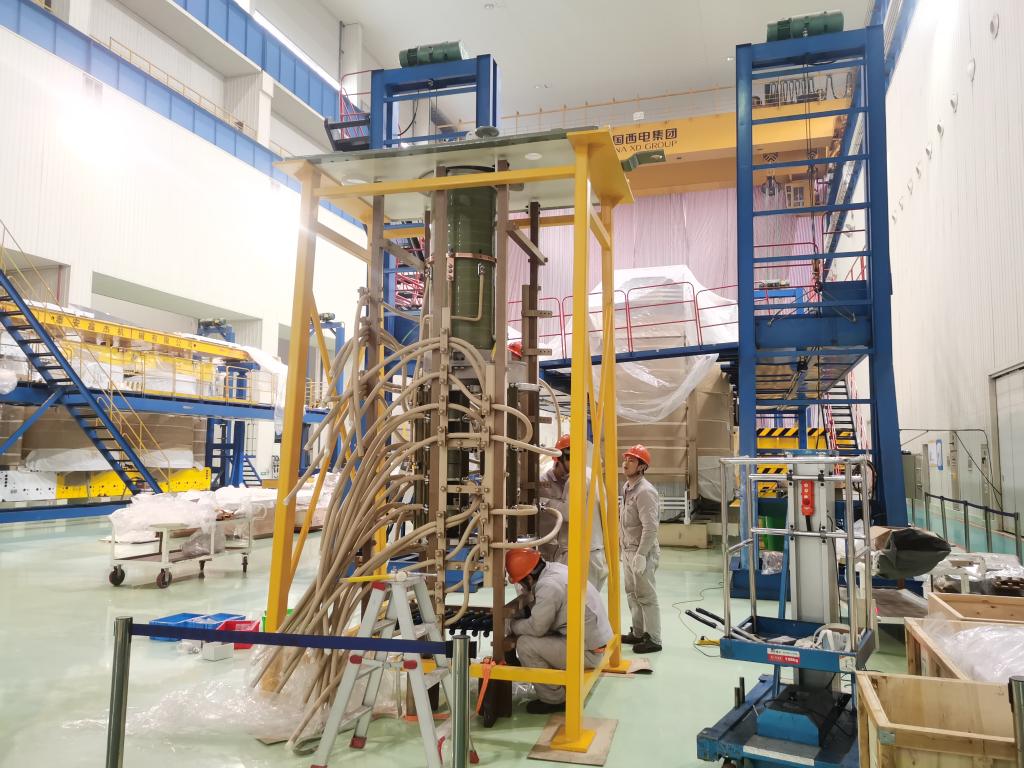 图为换流变压器有载分接开关安装现场。(受访者供图)