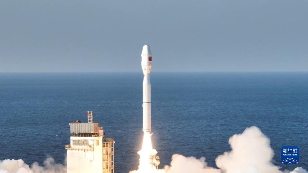 12月9日14时35分,我国太原卫星发射中心在黄海海域使用捷龙三号运载火箭,采用“一箭十四星”方式,成功将吉林一号高分03D47-50星、东坡08-10星等14颗卫星顺利送入预定轨道,发射任务获得圆满成功。 新华社发(郭厚泽摄)