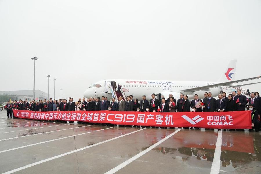 上海虹桥机场,东航接收C919现场。新华社记者丁汀摄