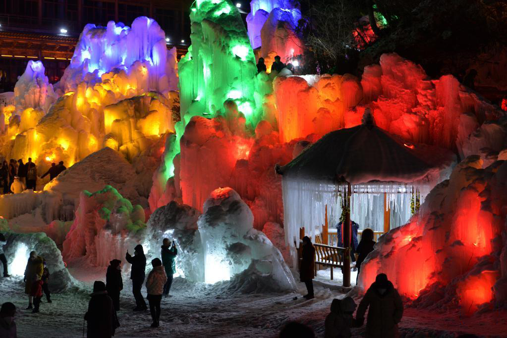 元旦将至,甘肃省积石山保安族东乡族撒拉族自治县大墩峡景区内的冰瀑、冰挂等景观流光溢彩,梦幻的冰雪世界吸引了八方宾客前来赏景游玩。