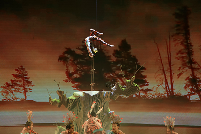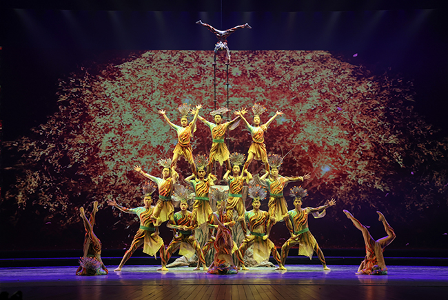 “春绿陇原·百花争艳”文艺展演演出杂技《高拐》。 贾笑云 摄