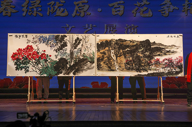 甘肃画院书画创作展示《春绿陇原 百花争艳》。 贾笑云 摄