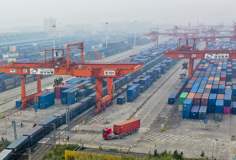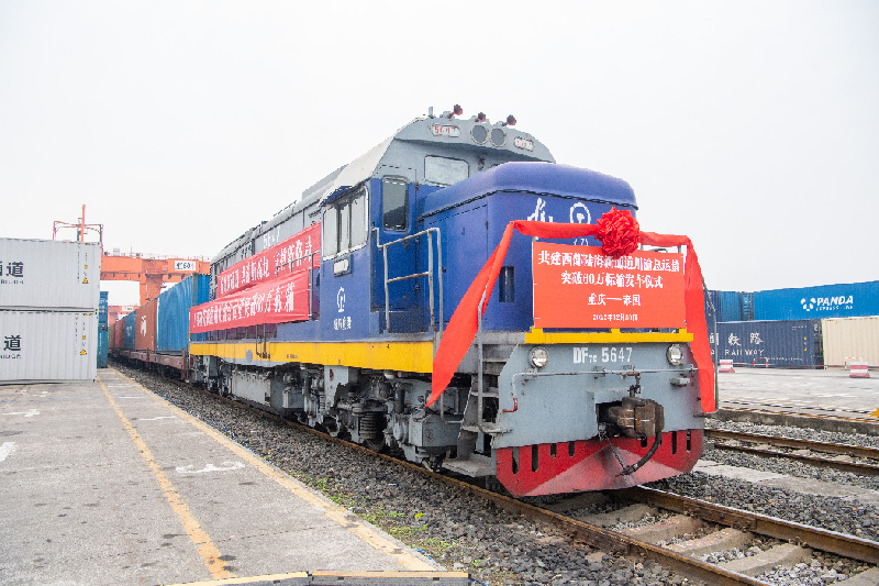 2022年12月30日,西部陆海新通道铁海联运班列在重庆团结村中心站等待发车。新华社记者唐奕摄