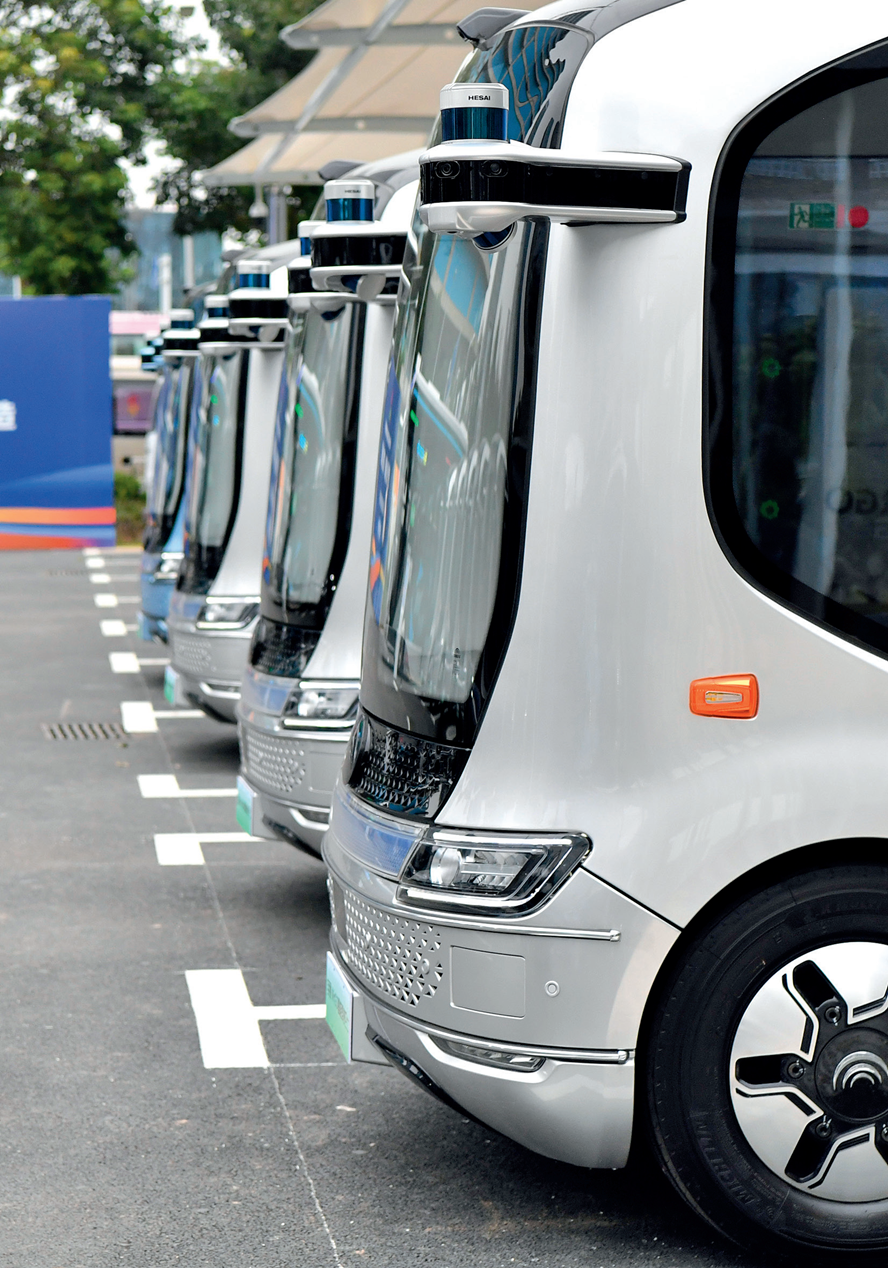 宇通智能巴士在郑州龙子湖智慧岛的公交站内充电(2021年10月19日摄)李嘉南摄/本刊