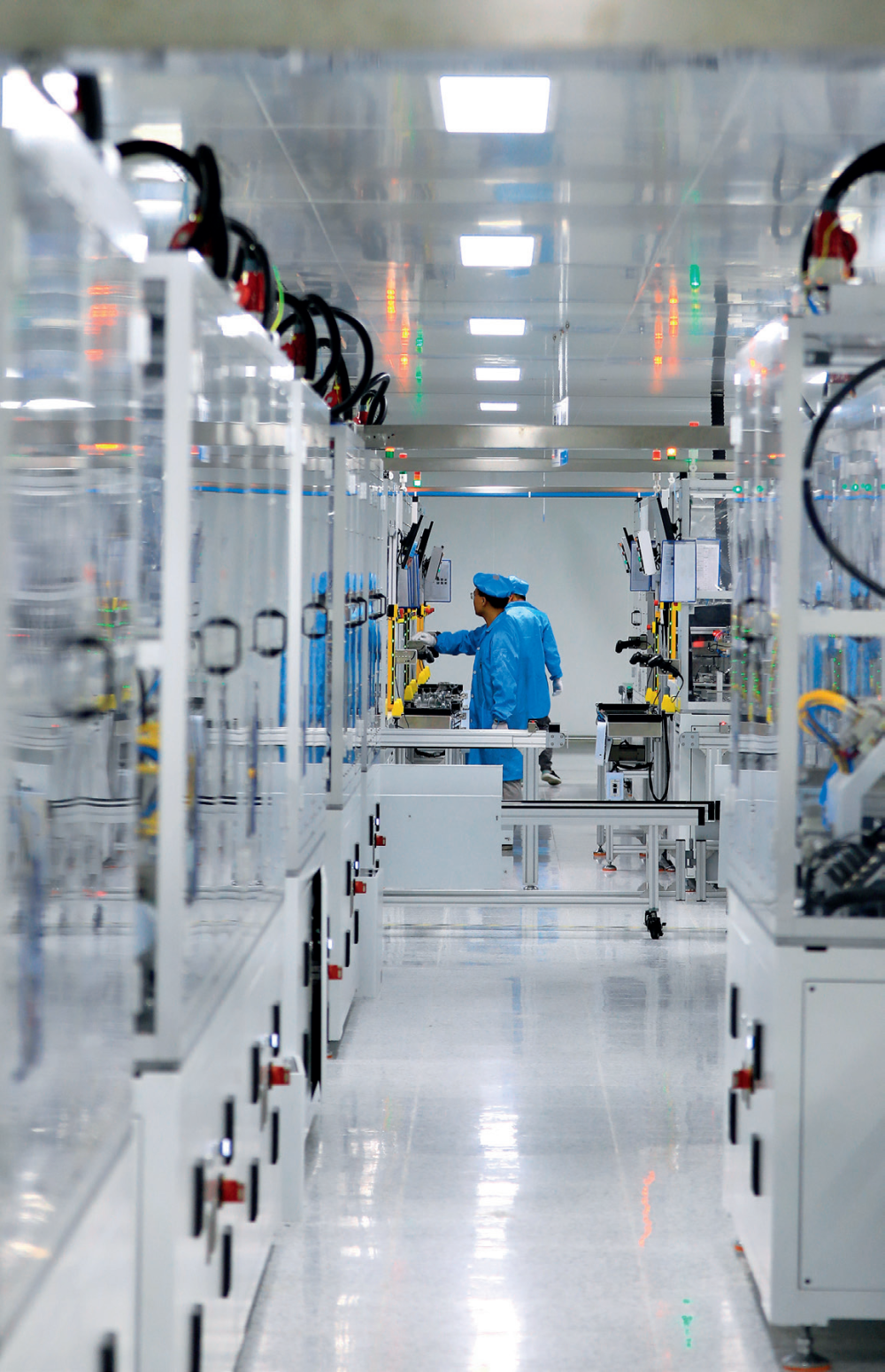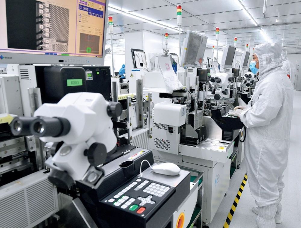 在位于新郑市的郑州电子信息产业园,SIP芯片研制及高端封测生产基地内的生产车间(2022年9月20日摄)唐强摄