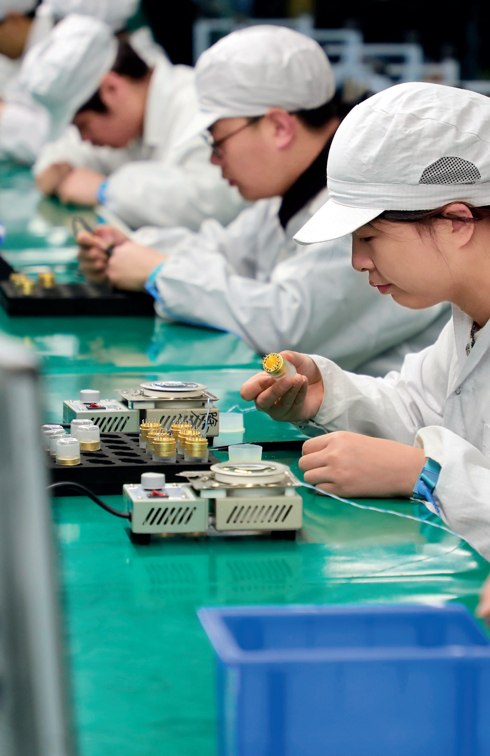 工人在位于郑州的中国电子科技集团公司第二十七研究所生产线上作业(2023年2月20日摄)李新华摄