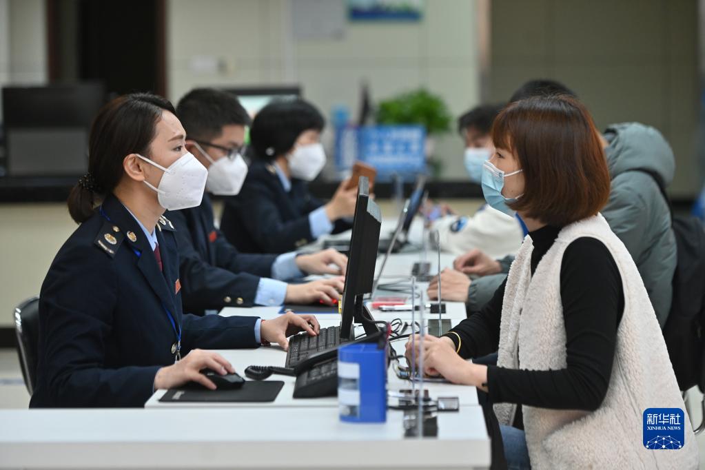 在福州市闽清县办税服务大厅,工作人员向企业工作人员介绍税惠政策(2023年2月13日摄)。新华社记者周义摄