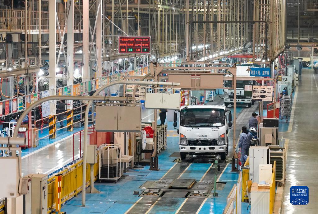 这是庆铃汽车(集团)有限公司繁忙的商用车整车生产线(2023年2月7日摄)。新华社记者刘潺摄