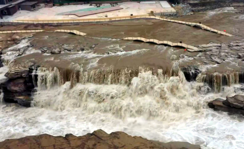 据了解,今年“桃花汛”期间,壶口瀑布水流量最大时达每秒1300立方米左右,呈现出主副瀑布连成一片景观,最大可达200米宽。