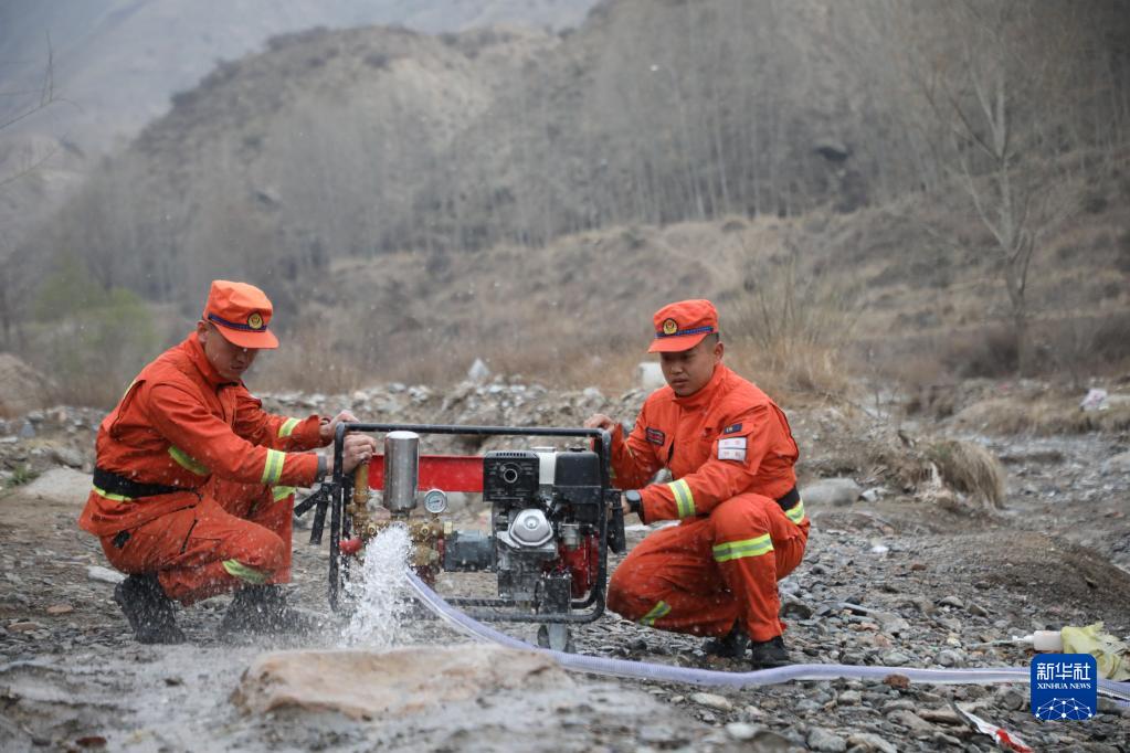 4月4日,连城驻防分队的指战员们在驻地周围进行水泵操作训练。新华社记者马希平摄