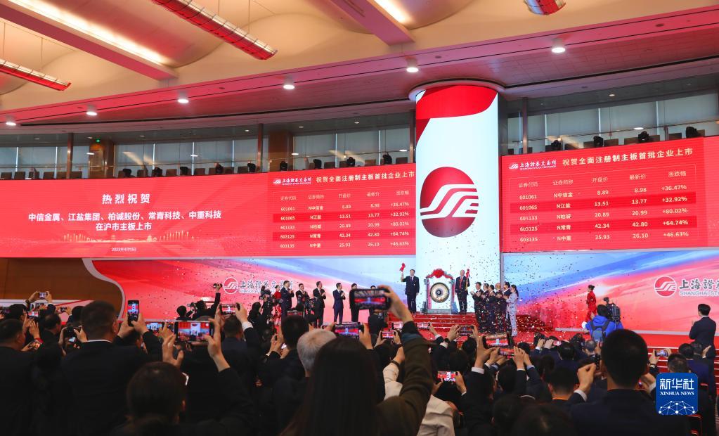 新华社北京4月10日电 10日,沪深交易所主板注册制首批企业上市仪式在北京、上海、深圳三地连线开展。上午9时30分,10家企业正式在沪深主板上市交易。