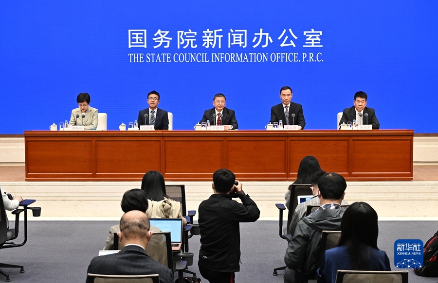 4月12日,国务院新闻办公室在北京举行“权威部门话开局”系列主题新闻发布会,请国家能源局局长章建华,综合司司长、新闻发言人梁昌新,能源节约和科技装备司司长刘德顺,新能源和可再生能源司司长李创军介绍“全面落实党的二十大精神深入推进能源高质量发展”有关情况,并答记者问。新华社记者李贺摄