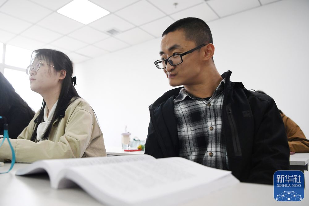 谢炎廷(右)和同学在兰州大学上课(5月10日摄)。