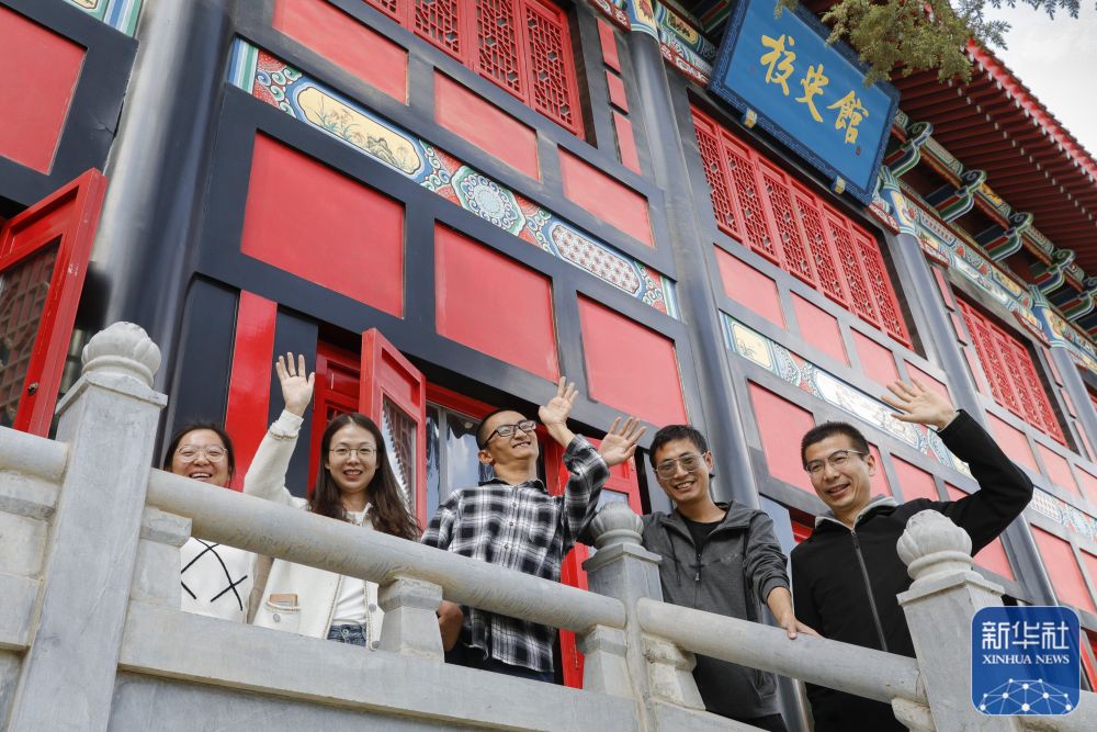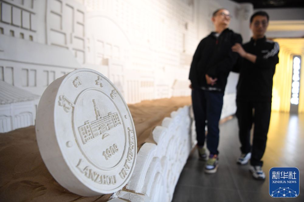 谢炎廷(左)和同学一起参观兰州大学校史馆(5月10日摄)。