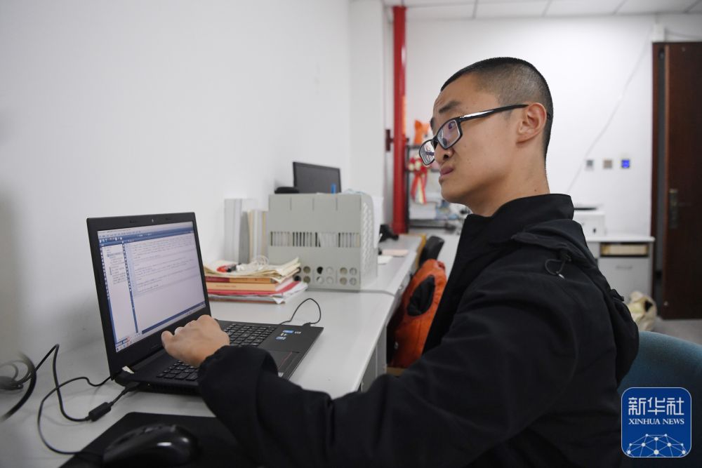 谢炎廷在兰州大学理工楼的自习室里修改自己的“毕业论文”(5月10日摄)。