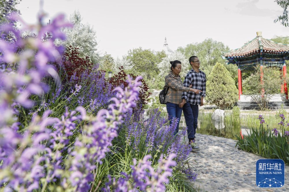 在兰州大学,谢炎廷和母亲刘小凤在学校散步(5月12日摄)。