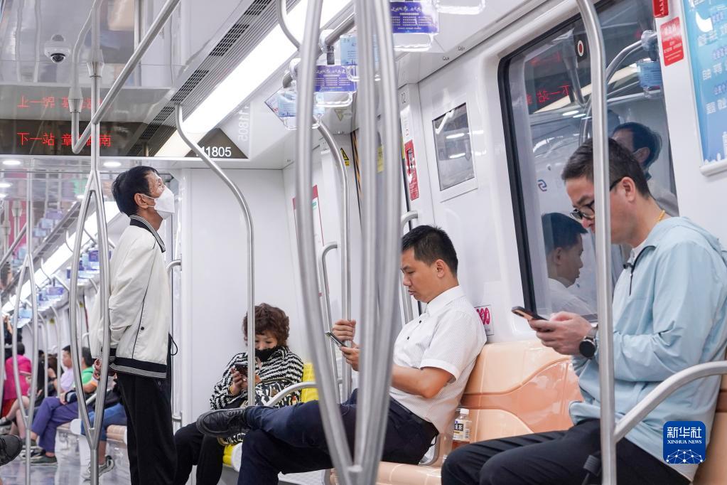 6月24日,乘客搭乘苏州轨道交通11号线出行。新华社记者 李博 摄