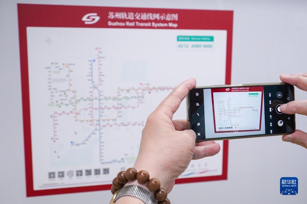 6月24日,乘客用手机拍摄苏州轨道交通线网示意图。新华社记者 李博 摄