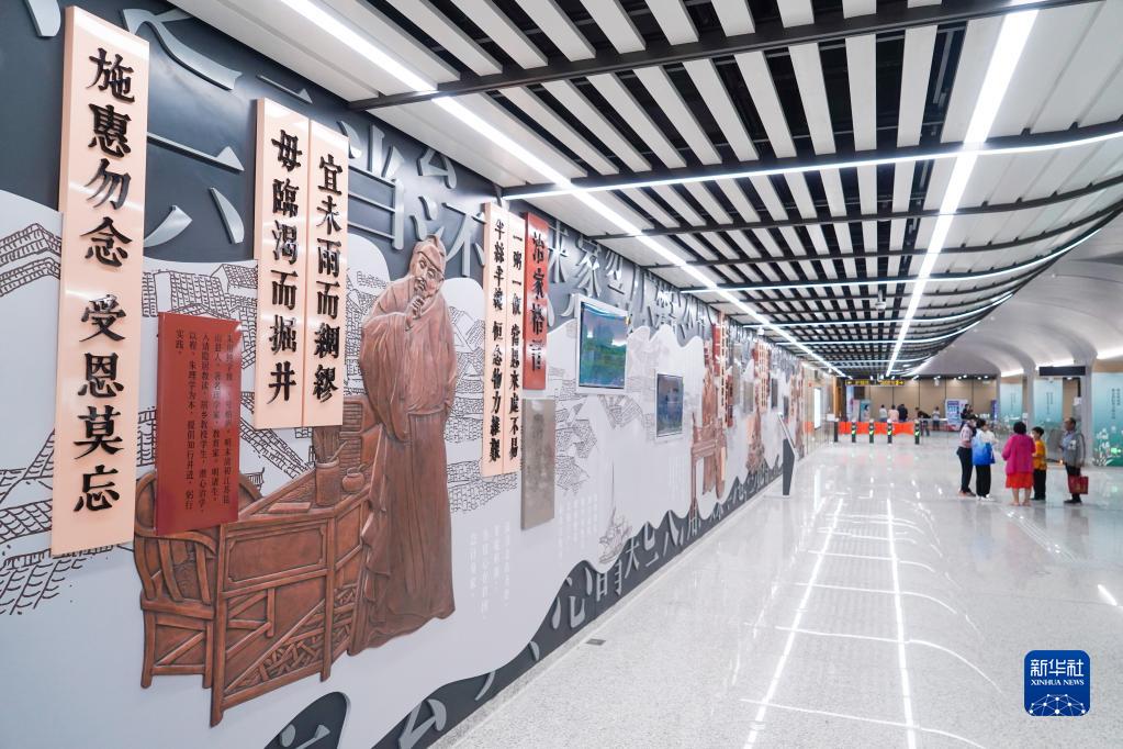 绣衣站,因靠近昆山老城的绣衣弄而得名,站外就是昆曲文化中心。这个浓缩了“苏州腔调”的文化符号通过地铁站台而活化重生:候车厅里高耸的榫卯式建筑、飘逸的苏绣丝绸、悠扬的昆曲节奏,让人不觉放慢了脚步。