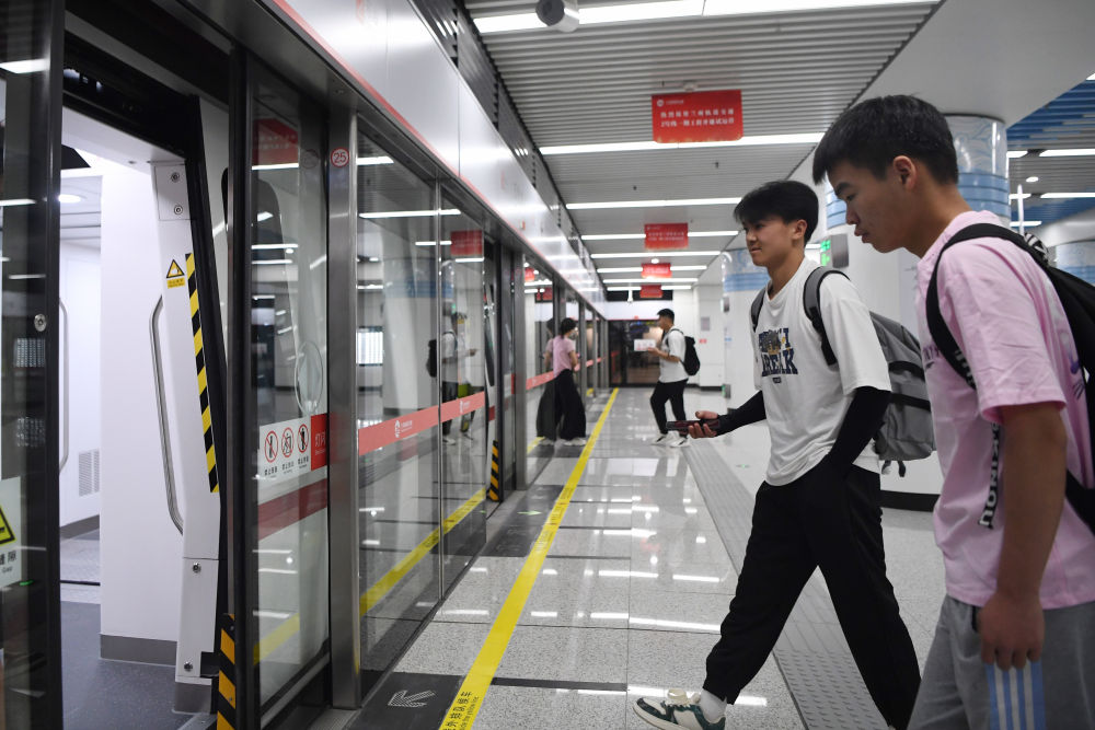 6月29日,市民从兰州轨道交通2号线五里铺站站台上车。新华社记者陈斌摄