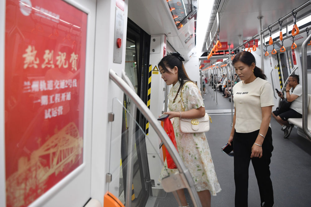 6月29日,市民乘坐兰州轨道交通2号线列车出行。新华社记者陈斌摄