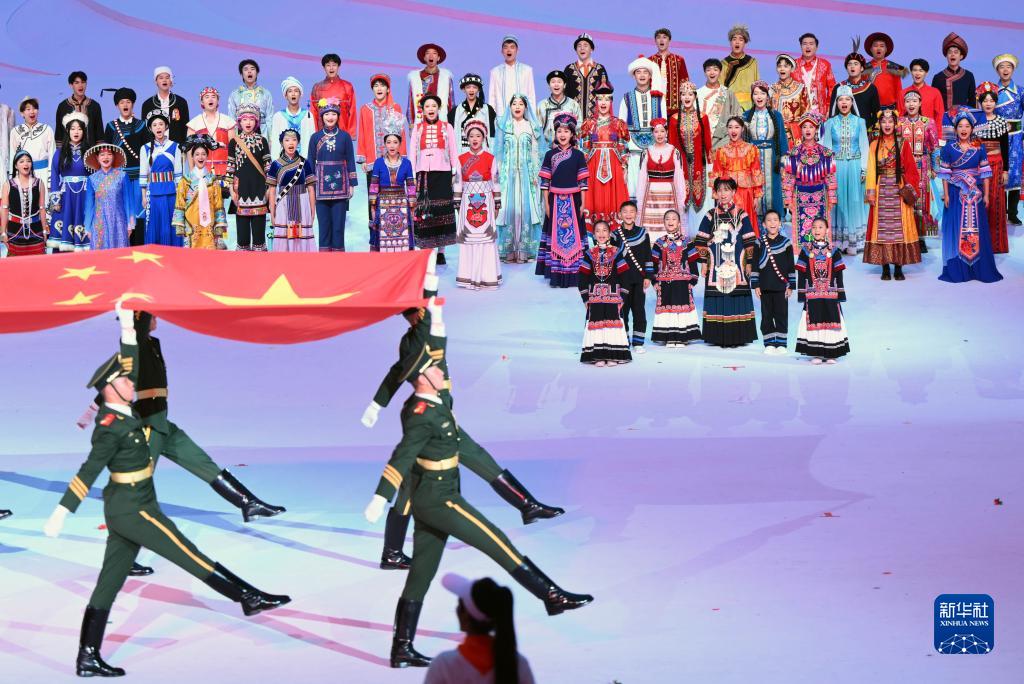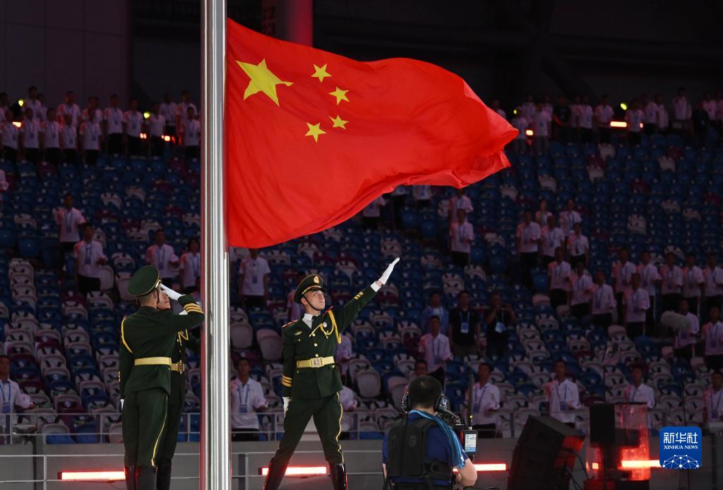 7月28日,中华人民共和国国旗入场。
