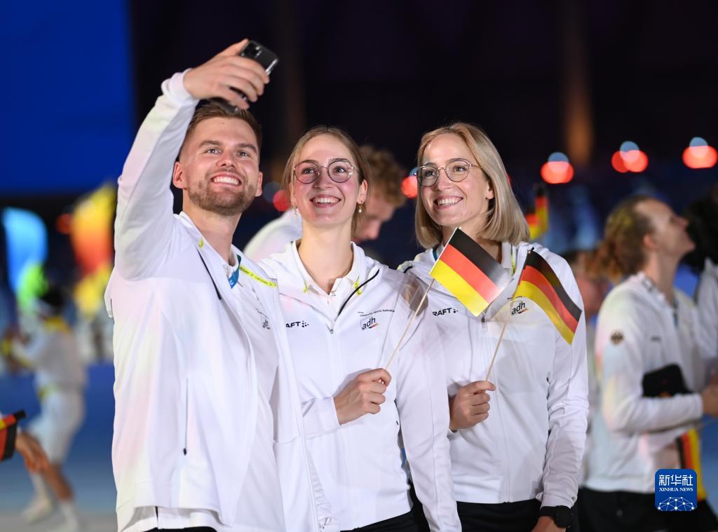 7月28日,德国大学生体育代表团在开幕式上入场。